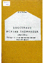 Восстание Исатая Тайманова (1836-1838 г.) [Текст] : Очерки по истории национального движения казакского народа : (с приложением карты и схемы) : (По материалам Ц. К. Архива Казакстана) / А. Ф. Рязанов- Кзыл-Орда : Издание Общества изучения Казахстана , 1927. – Труды Общества изучения Казакстана.– 3000 экз. . (в пер.) Т. 8, вып. 4 .– 103 с. (в пер.) : 20 тг.