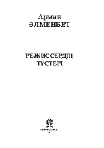 Режиссердiң түстерi [Мәтін] / Әлменбет, Арман ... – Алматы : Жалын, 2013. - 190, [1] б.– (Жас толқын. - ҚР Мәдениет және ақпарат министрлігі, Ақпарат және мұрағат комитеті "Әдебиеттің әлеуметтік маңызды түрлерін басып шығару" бағдарламасы бойынша шығарылды . . – 2000+500 дана – 978-601-7286-82-8 : 500 тг.