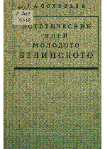 Эстетические идеи молодого Белинского / Соловьев, Геннадий Арсеньевич ... – Москва : Художественная литература, 1986. - 350, [1] c. . – Библиогр.: с. 341-346 . – 15 000 экз. – не указан (в пер.) : 40 тг.