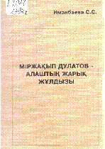 Міржақып Дулатов - Алаштың жарық жұлдызы [Мәтін] / С. С. Иманбаева ; жалпы ред. басқ. К.Ә. Сағадиев ; ҚР білім және ғылым министрлігі ; Қазақ мемл. аграрлық ун-ті... – Алматы : Қазмемагру, 2001. - 233 б., портр.; - Кеңес Нұрпейісұлының қоры : К. Нұрпейісұлына сыйға тарт. авт. қолтаңбасымен . – Пайдал. деректер мен әдеб.: 193-207 б. ; Қосымша: 208-232 б. . – 300 дана – 9965-416-41-9 : 30 тг.