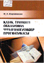 Қазақ тіліндегі окказионал фразеологизмдер прогматикасы [Мәтін] / Ж. Ә. Абдрахманова ; Әл-Фараби атын. Қазақ ұлттық ун-ті... – Алматы : Қазақ университеті, 2013. - 164 б. . – Библиогр.: 152-160 тг. . – 50 дана – 9965-773-84-Х : 1000 тг.
