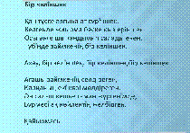 Бір келіншек : халық әні : ән мәтіні ; [жоба авт. Б. Атығаев] .- Қазақтың халық әндері жинағынан // Қазақтың халық әндері=Казахские народные песни=Kazakh folk songs, 79 б.