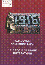 Тарыхтын эскирбес тагы = 1916 год в зеркале литературы [Text] : Улуттук - боштондук көтөрүлүшкө 100 жыл : Библиографиялык көрсөткүч / ; [илимий ред. Ж. К. Бакашова; түз.: Э. Сманова, О. Сухомлинова]; Алыкул Осмонов атындагы Кыргыз Республикасынын Улуттук китепканасы... – Бишкек : [б. и.], 2016. - 130 б. - Текст на кирг., рус. . . – 200 нұска (байл.) : 40 тг.
