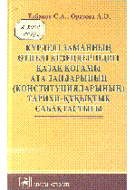 Күрделі заманның өтпелі кезеңдеріндегі қазақ қоғамы ата заңдарының (конституцияларының) тарихи-құқықтық сабақтастығы [Мәтін] / Табанов, Социал Ағысұлы Оразова, Айша Әлиқызы ... – Алматы : Жеті жарғы, 2005. - 357 б. . . – 2000 дана – ISBN 9965-11-198-7 (мұқ.) : 935 тг.