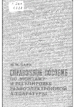 Справочное пособие по монтажу и регулировке радиоэлектронной аппаратуры / Зарх, Исаак Моисеевич ... – Ленинград : Лениздат, 1966. - 443, [1] с., ил.; . – Библиогр.: с. 439-440 . – 100000 экз. – не указан (в пер.) : 50 тг.