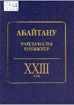 Абайтану [Мәтін] : Таңдамалы еңбектер ; Әл-Фараби атын. Қазақ ұлттық ун-ті ; [құраст., түсінік жазғ.: А. Айтмұханбетова [ж. б.] ; жалпы ред. басқ. Ж. Дәдебаев] .- Алматы : Қазақ университеті , 2017.– 40 тг. . – 978-601-04-2876-8 (23-том) (мұқ.), – 978-601-04-1617-8 (ортақ) - Еңбек 3979/ГФА-"Абай Құнанбаевтың шығармашылық мұрасын пәнаралық зерттеу" бағдарламасы аясында дайындалып, жарық көріп отыр . 23-том . [Ойлар мен толғаныстар]– 273 б. (мұқ.) : 2500 тг.,