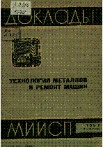 Доклады МИИСП [Text] ; [редкол.: В. Н. Андрианов [и др.] ; отв. за вып. С. С. Некрасов] ; Моск. ин-т инженеров с.-х. производства .- Москва : [б. и.] , 1965.– 600 экз. . Т. 2, вып. 4 . Технология металлов и ремонт машин– 95 с. : 15 тг.