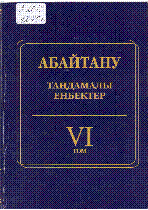 Абайтану [Мәтін] : Таңдамалы еңбектер ; [жалпы ред. басқ. Ж. Дәдебаев ; құраст.: П. Бисенбаев [ж. б.] ; жауапты ред. З. Бисенғали] ; Әл-Фараби атын. Қазақ ұлттық ун-ті .- Алматы : Қазақ университеті , 2016.– 50 дана . – 978-601-04-1680-2-(6 том), – 978-601-04-1617-8(ортақ) - Еңбек 3979/ГФА-"Абай Құнанбаевтың шығармашылық мұрасын пәнаралық зерттеу" бағдарламасы аясында дайындалып, жарық көріп отыр . Библиогр.: 63 б., 178 б., 295 б. 6-том .– 298 б. : 1900 тг.,