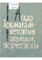 Асқар Тоқмағамбетовтың ақындық творчествосы [Мәтін] : очерк / Г. Смағұлова ... – Алматы : Жазушы, 1965. - 93, [1] б. - Тұрсынбек Кәкішұлының қоры . . – 12 000 дана : 30 тг.