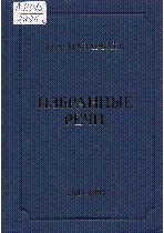Избранные речи [Text] / Н. А. Назарбаев- Астана : Сарыарка , 2011.– 10000 экз. . – 978-601-277-044-5, 9965-536-90-2 (Т. 4, кн. 2)(в пер.) - Құнды тарту 2015 . Указ. геогр. наименований: с. 616-623 ; Указ. имен: с. 624-627 ; Указ. учреждений и орг.: с. 628-634 Т. 4, кн. 2 . 2003-2005 гг.– 638, [1] с. (Т. 4, кн. 2)(в пер.) : 50 тг.
