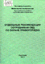 Отдельные рекомендации сотрудникам ОВД по охране правопорядка [Text] : учебно-методическое пособие / ; под общ. ред. М. А. Кызылова ; РК М-во внутренних дел ; Караганд. акад. им. Б. Бейсенова... – Караганда : [б. и.], 2013. - 95 с., ил.; . – Библиогр.: с. 91-92 . – 300 экз. – 978-601-7231-70-5 : 20 тг.