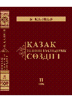 Қазақ тілінің түсіндірме сөздігі [Мәтін] / Б. Қ. Қалиев- Алматы : Керемет медиа , 2023.– 3000 дана . – ISBN 978-601-80884-7-6 (мұқ.) - Қазақстан Республикасы Мәдениет және спорт министрлігі "Мәдениет және өнер саласындағы бәсекелестікті жоғарылату, қазақстандық мәдени мұраны сақтау, зерделеу мен насихаттау және архив ісінің іске асырылу тиімділігін арттыру" бағдарламасы "Әдебиеттің әлеуметтік маңызды түрлерін сатып алу, басып шығару және тарату" кіші бағдарламасы бойынша жарық көрді . Библиогр.: 486-494 б. 2-том .– 494, [1] б. (мұқ.) : 2678, 57 тг.