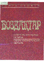 Боздақтар [Text] : 1941-1945 ж. Ұлы Отан соғысы жеңісінің 50 жылдығына арналады: Отан қорғау жолында құрбан болған боздақтарға ескерткіш-кітап ; бас ред. Р. Н. Нұрғалиев- Алматы : Қазақ энциклопедиясы , 1996. – Книга памяти.– 3000 дана . – 5-89800-098-4 (мұқ.), 5-89800-075-5 (общ.) - Мәтіні қазақ және орыс тілдерінде . 2-том . Солтүстік Қазақстан облысы– 400 б. : 200 тг.