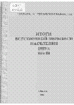 Итоги Всесоюзной переписи населения 1989 г. ; Государственный комитет Республики Казахстан по статистике и анализу- Алма-Ата : Респ. информ.-издат. центр , 1992.– 200 экз. . – не указан (в пер.) Т. 3 .– 247 с. : 250 тг.