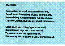 Еу, айдай : халық әні : ән мәтіні ; [жоба авт. Б. Атығаев] .- Қазақтың халық әндері жинағынан // Қазақтың халық әндері=Казахские народные песни=Kazakh folk songs, 87 б.