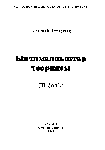 Ықтималдықтар теориясы [Мәтін] / Н. Ақанбай ; Әл-Фараби атындағы Қазақ ұлттық университеті ; редактор С. Мәдиев ; пікір жазғандар: Б. Е. Кангужин, Қ. Қ. Шакенов, С. Т. Мухамбетжанов .- Алматы : "Қазақ университеті" , 2007.– 1000 дана . – ISBN 9965-30-467-Х 3-бөлім .– 296 б. : 1200 тг.